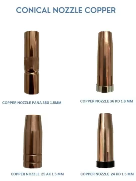 Our Conical Copper Nozzles are crafted from premium-grade copper to ensure maximum conductivity, durability, and heat dissipation. Ideal for consistent gas coverage and stable arc performance, these nozzles are available in variants like PANA 350 (1.5 mm), 36 KD (1.8 mm), 25 AK (1.5 mm), and 24 KD (1.5 mm). Perfectly engineered for professional welding setups, they help achieve clean welds, reduce spatter, and extend torch life.